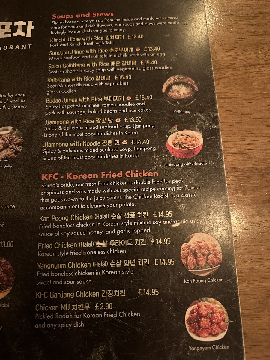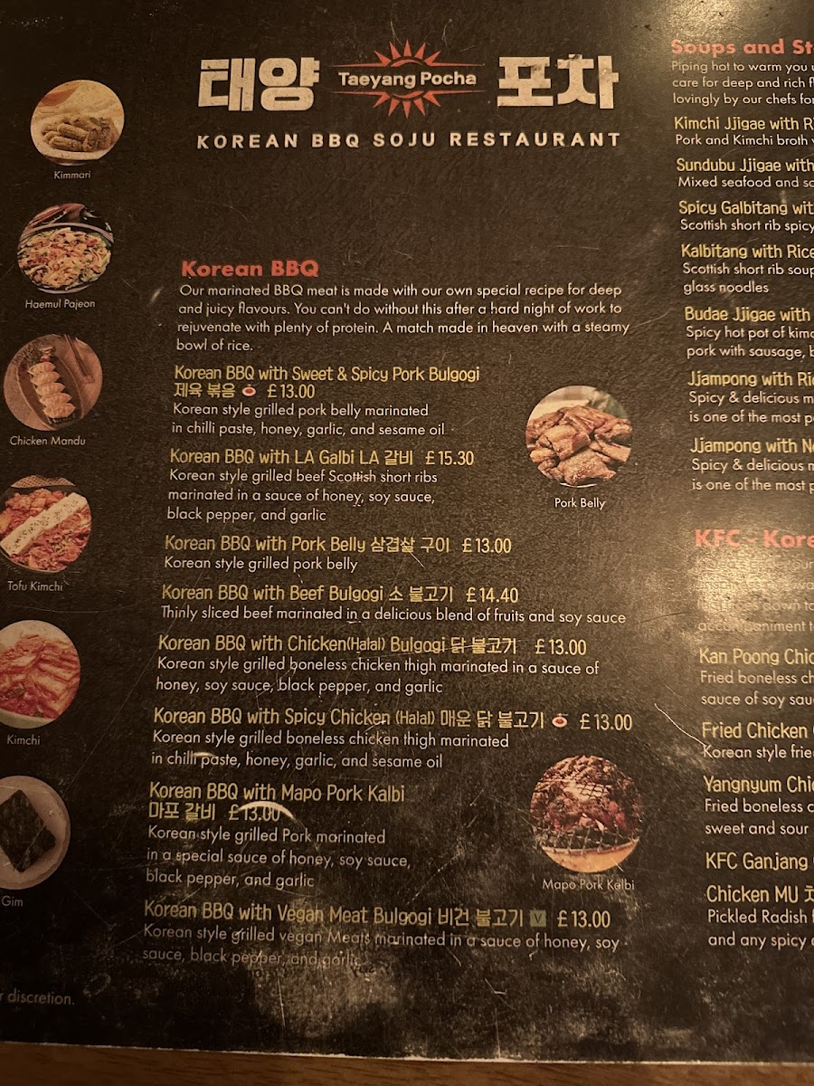 Welcome to Taeyang Pocha Korean BBQ SOJU Restaurant, a hidden gem located at 125 Lewisham Way, London. This cozy spot is celebrated for its authentic Korean flavors, perfect for BBQ enthusiasts and novices alike. The menu is a delightful mix of traditional starters like Sookju Namul and Kimchi Jeon, all priced affordably.